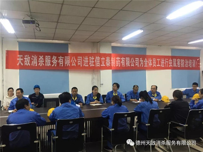 天敌消杀服务有限公司进驻信立泰制药有限公司为企业员工进行虫害防治培训